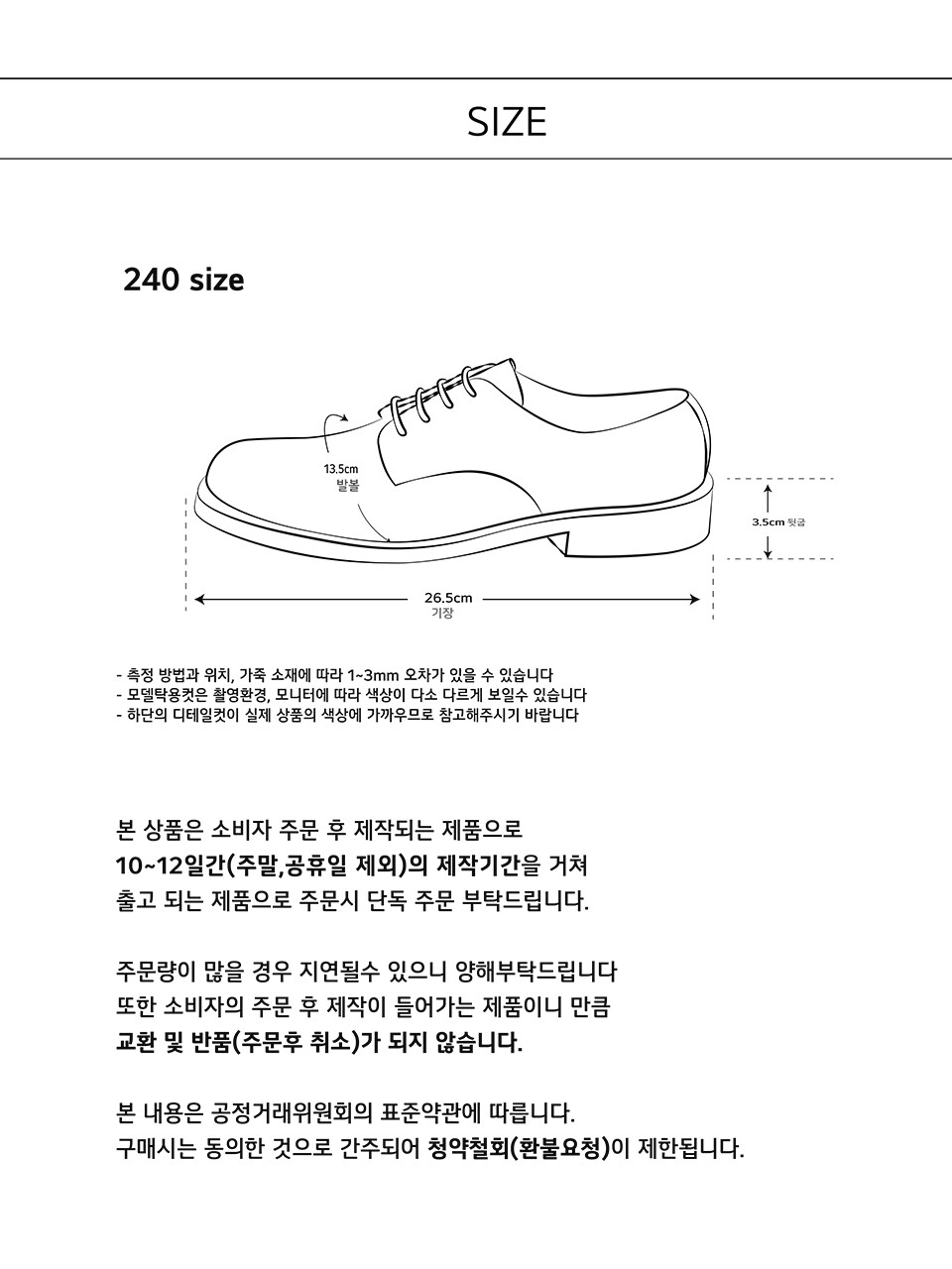 수제화 제품의 특성상 평일기준 7-10일정도 기간 소요됩니다. 동의하시면 동의라고 적어주세요.