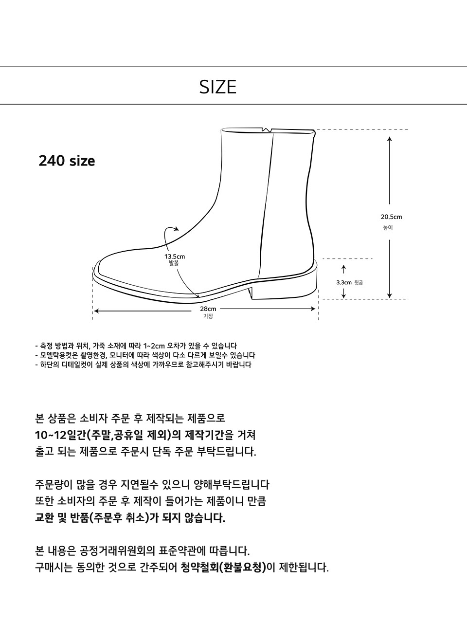 - 오더메이드 방식으로 제작기간 평일기준 7-10일정도 소요되며 공장의 일정에 따라 변동이 발생 될 수 있습니다.